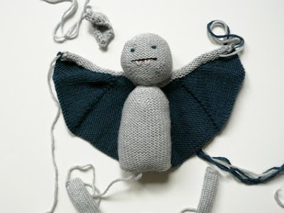 Hier noch mit einem Ohr und ohne Beine. Das Gesicht werde ich sicherlich noch ändern. Ich denke es braucht eine Mauseschnauze. Dies ist nur der Anfang und ich werde noch einiges ausprobieren und tüfteln müssen. Mit den Flügeln bin ich sehr zufrieden, leider sind sie noch zu breit für die kurzen Nadeln und werde diese in zwei Einzelteile beschreiben müssen. Dann suche ich nach einer Lösung, wie man die Fledermaus mit geschlossenen Flügeln kopfüber und an den Füssen aufhängen kann, ohne dass die Füsse komisch aussehen. Braucht also noch etwas Geduld, aber ich hoffe es wird meinen Stricker/innen gefallen.